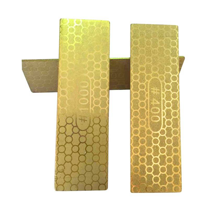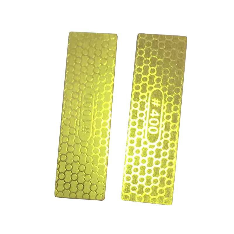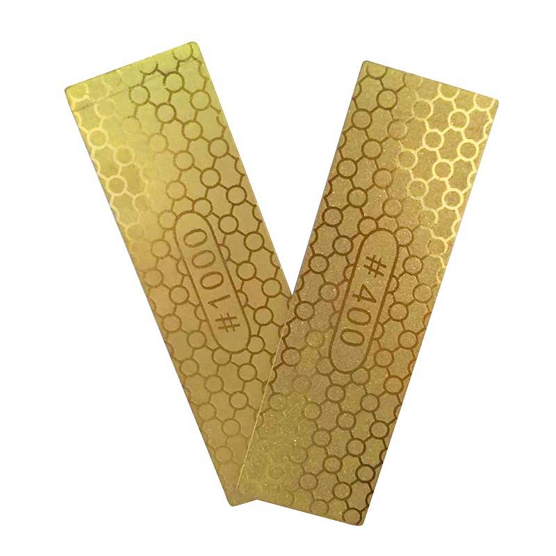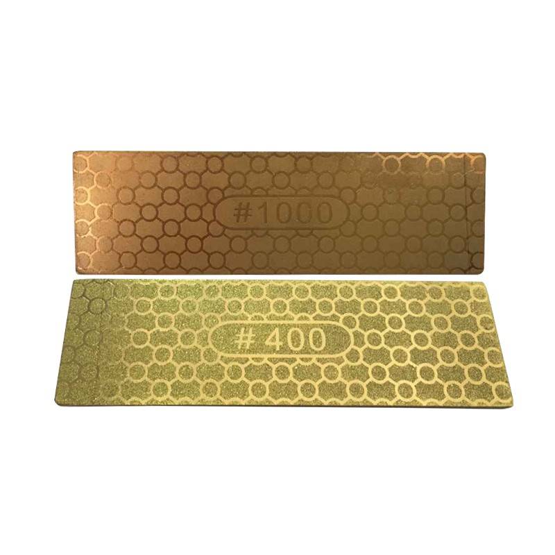 Features: Dual Side: Grit #400 #1000 Size: 30*100*1.2mm Much more efficiency than waterstones and Less risk of damaging the edges Caution: 1. Do not use the knife sharpener to sharpen serrated blades 2. To avoid damaging the knife, please sharpen the knife slightly and don't sharpen back and forth 3. Do not put the sharpener in the dishwasher or submerge in water Package includes: 1 x 400/1000# Double Sided Diamond Knife Sharpening Stone Details pictures:
