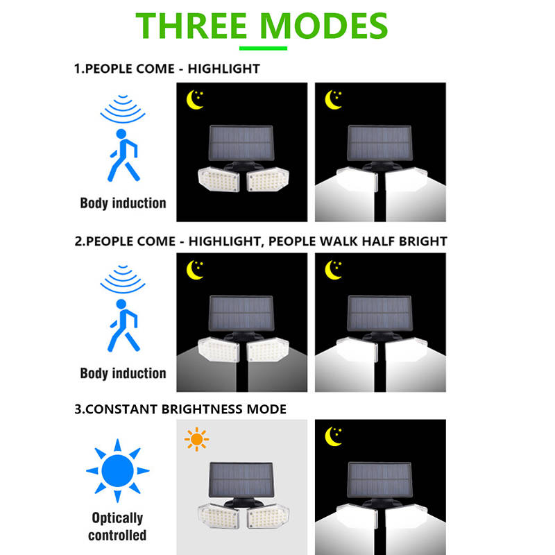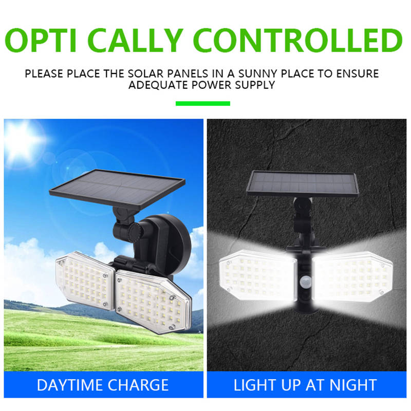 Features: Solar powered, build in rechargeable battery Equipped with solar panels, energy-saving Auto turn on in dim light at dusk Auto shut off at dawn Auto charge the battery by sunlight during the day Adjustable lighting angle Weatherproof design for durability Easy installation, no electrical wiring Widely used for outdoor illumination Specification: Li-ion Battery: 3.6V, 2000mAh LED Quantity: 56/78/108/130PCS Waterproof: IP65 Lighting Time: 6-8h Charging Time: 4-6h Detecting Angle: 120ᆪ Working Temperature: -20a-45a Induction Distance: 3-5m Illumination Range: 25 Materials: ABS Package included: 1 x LED Solar Wall Lamp