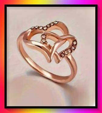Double Heart Love Artificial Diamond Ring Rose Golden colour Size 9