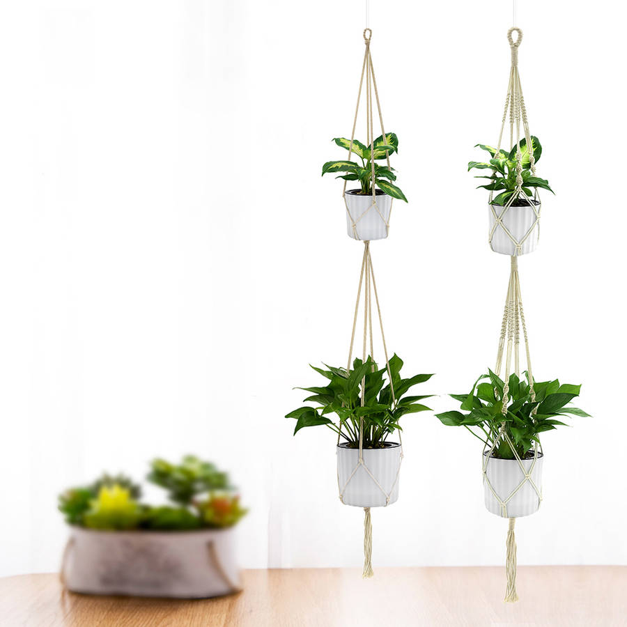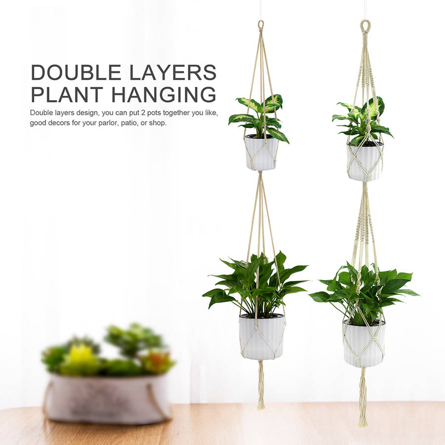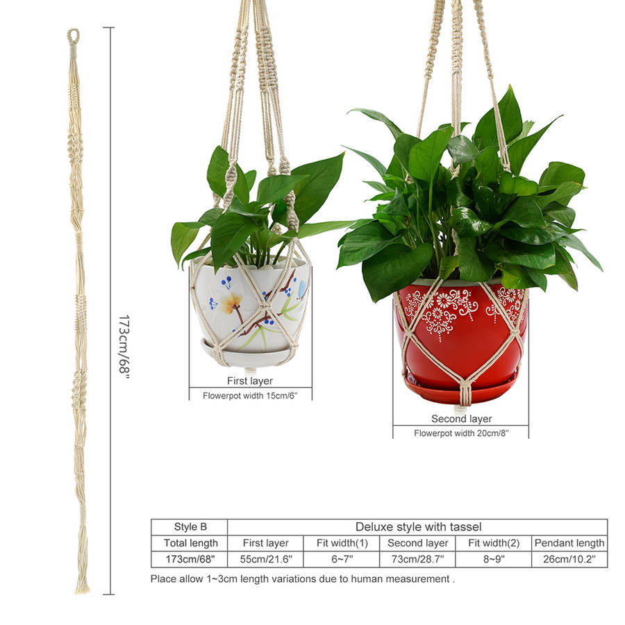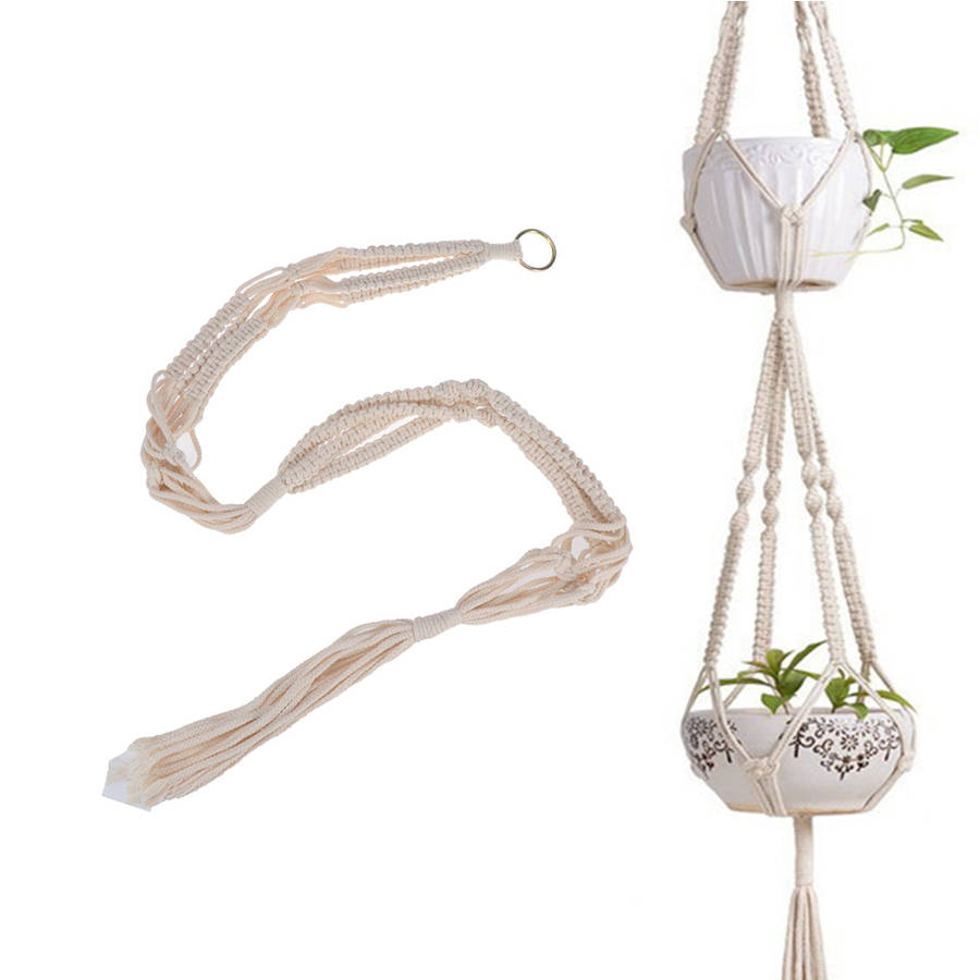 -Great for indoor and outdoor use - Safe and convenient, pure cotton ropes, durable enough -Vintage-inspired macrame doublelayers designplant hanger -Made of high quality cotton, strong and durable. not easy to deformation, corrosion resistance -Fit a variety of flower pot shapes and sizes,match with round or square flower pot to decorate your home