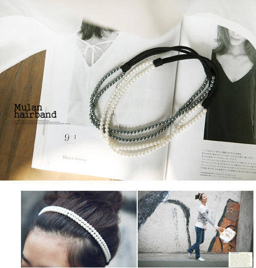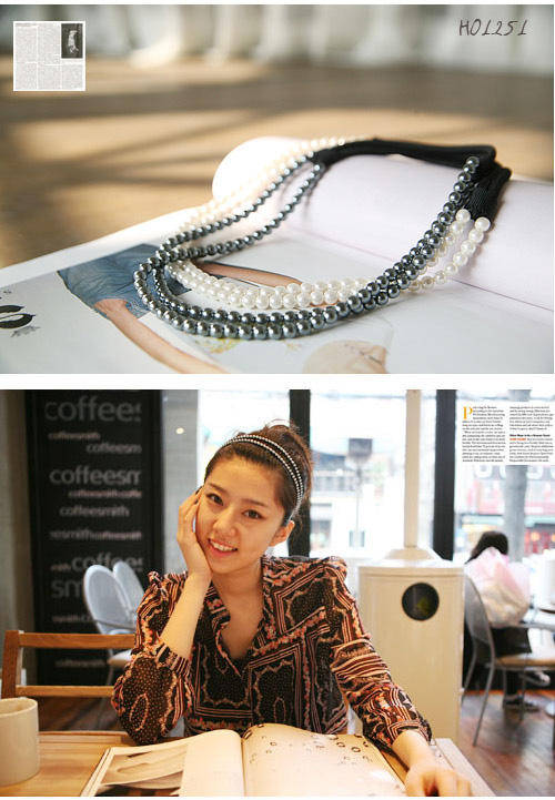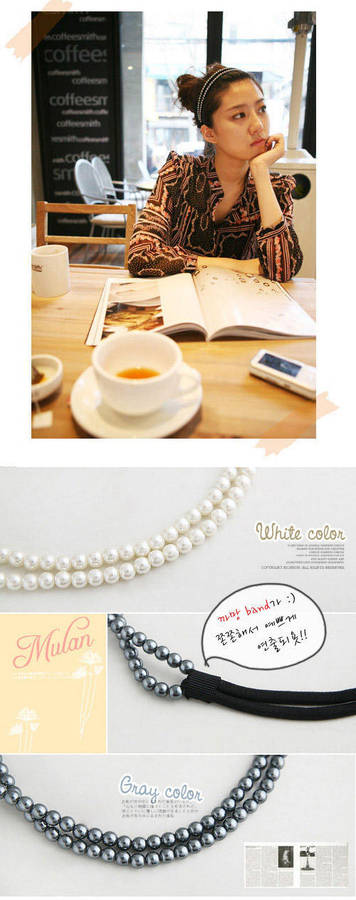 This headband assembled with double pearl strand and on a single elastic.