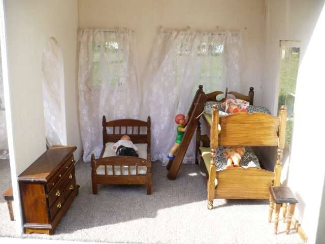 Bathroom: basin/ toilet/cupboard suite bath, table, basin jug on stand. Dolls : Mother Father Ouma Oupa 4 Kiddies 2 Babies 1 dog.