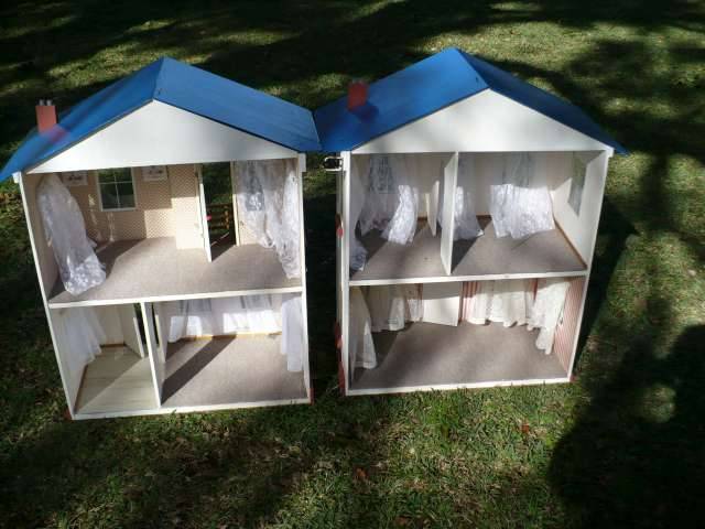 DOLLS HOUSE DOUBLE STOREY 2 WINGS 6 ROOMS FULLY FURNISHED BUILT IN THE 1970's
