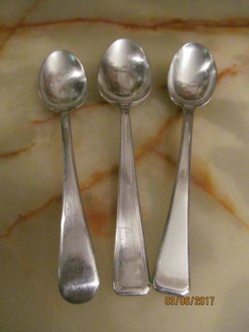 SINCE CUTLERY (AND ESPECIALLY TEASPOONS) ARE ITEMS ONE NEVER SEEMS TO HAVE AN ADEQUATE QUANTITY OF, THIS LOT IS SIMPLY IDEAL AS ADDITIONS. THE LOT CONSISTS OF THREE VINTAGE SILVER PLATED TEASPOONS, ONE WITH A DOVETAIL HANDLE PATTERN, ONE WITH THE ELAN HANDLE PATTERN AND THE THIRD BEING A CLASSICALLY PLAIN HANDLE.