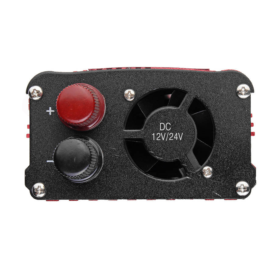 Specifications: Color: Red Material: Metal Peak power: 4000W Rated power: 1500W Output voltage: 220V Operating voltage: 12/ 24V Output frequency: 50Hz Output waveform: Modified sine wave Maximum power amplifier: more than 85% Ambient temperature: 0 -70a Size: Approx.24.5x9.5x5.5cm/ 5.51x6.54x1.97'' Cable: Approx. 50-60cm/ 19.70-23.62'' Features: -Adapting aluminum alloy case, antioxidant, sturdy and durable. -Portable design, DC input, AC output. -Protect the electrical and automotive circuits in use. -Can be operated directly connected with wire clip. -Cooling fan for span life and safety use. -Built-in USB port and UK plug port, can provided power to use household AC products. -Short circuit, overload, overheat, low voltage and over voltage function, keep your devices and car safe.