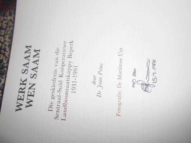 Geteken op insetsel op eerste blad deur Hoofbestuurder Swart op 15 Junie 1991 asook op titelbladsy, sien fotos hieronder.