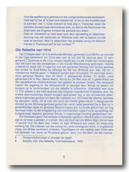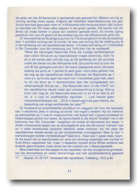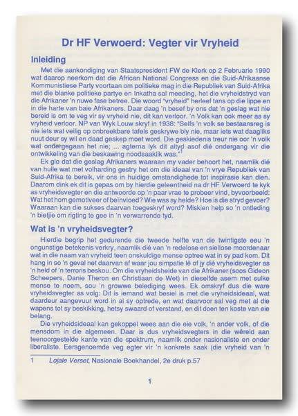 Dr Verwoerd: Vegter vir Vryheid - 16de Gedenklesing deur prof WJ Verwoerd (1990).A5, "staple"-boekie, 14 bls. Boekie in redelike goeie toestand. Buiteblad het paar vlekke op.