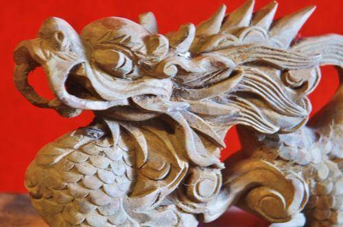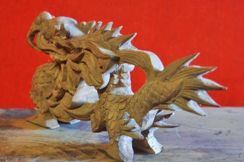 This is a lovely carving - a genuine work of art. Dragons are a revered part of Asian mythology. Carved from a soft wood by hand - no machines were used in making this item.
