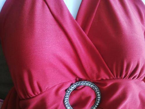 Dramatic Red Full Length Halter Neck Evening Dress with lovely Diamante Buckle in front. (Couple of small clicks in front see pics) otherwise in Very good condition Brand New