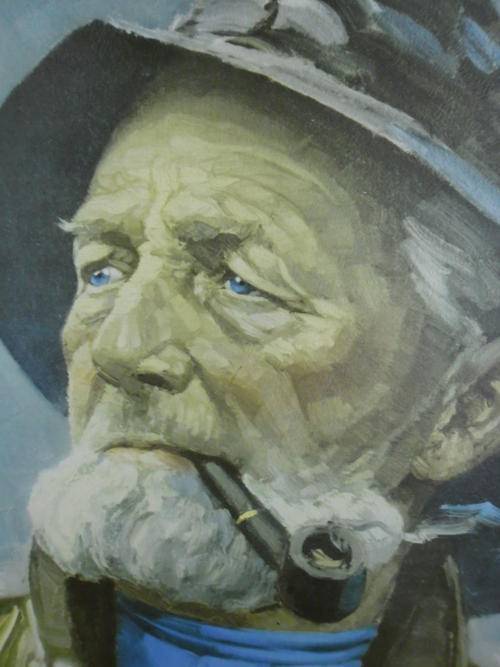 THIS PAINTING WAS PAINTED BY HARRY HAERENDEL, IT IS A PAINTING OF A FAMOUS SEA RESCUE MAN BY THE NAME OF DORUS RIJKERS. 1847 - 1928 WHO WAS ACCREDITED WITH SAVING THE LIVES OF OVER 500 MEN AT SEA. HE WAS HONORED BY THE KING OF HOLLAND FOR HIS VALOR BUT DIED AT THE AGE OF 81 A RELATIVELY POOR MAN.