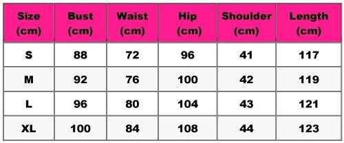 About Size: There may be a difference of +/- 3cm/1.5-inch due to hand measurement. These measurements are meant as a guide to help you select the correct size. Please take your own measurements and choose your size accordingly.