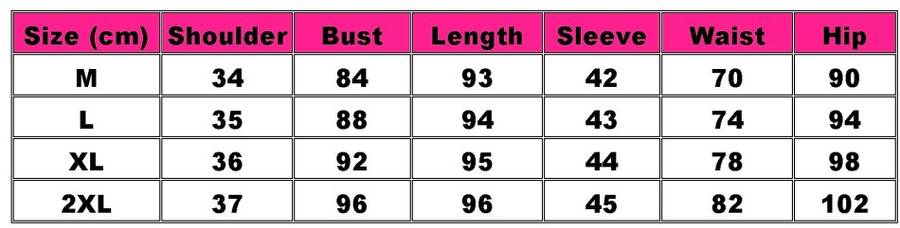 About Size: There may be a difference of +/- 3cm/1.5-inch due to hand measurement. These measurements are meant as a guide to help you select the correct size. Please take your own measurements and choose your size accordingly.