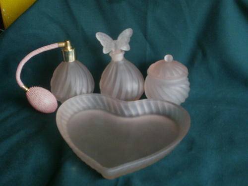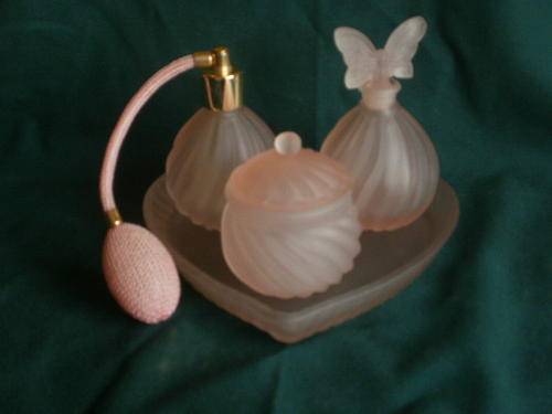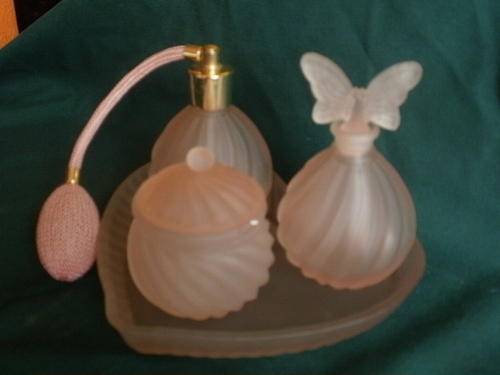 A BEAUTIFULL DRESSING TABLE SET. PERFUME BOTTLE STILL IN WORKING CONDITION.