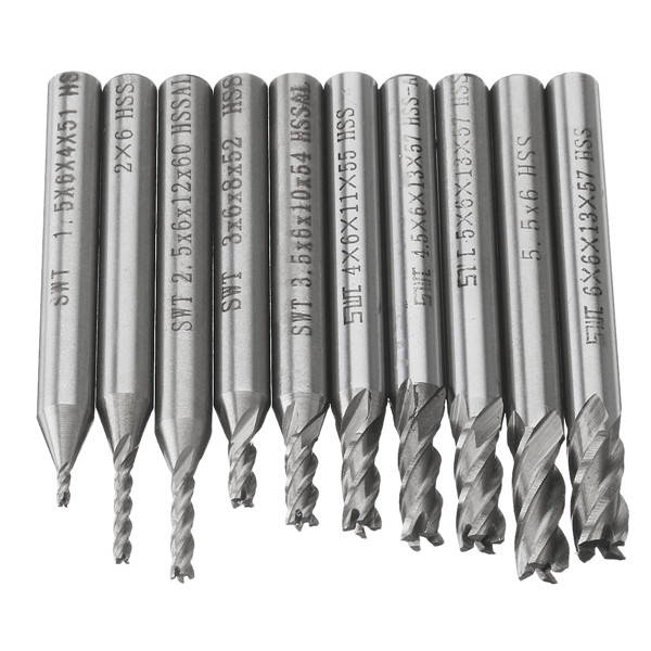 1 x 1.5-6mm End Mill Cutter Set (10pcs)