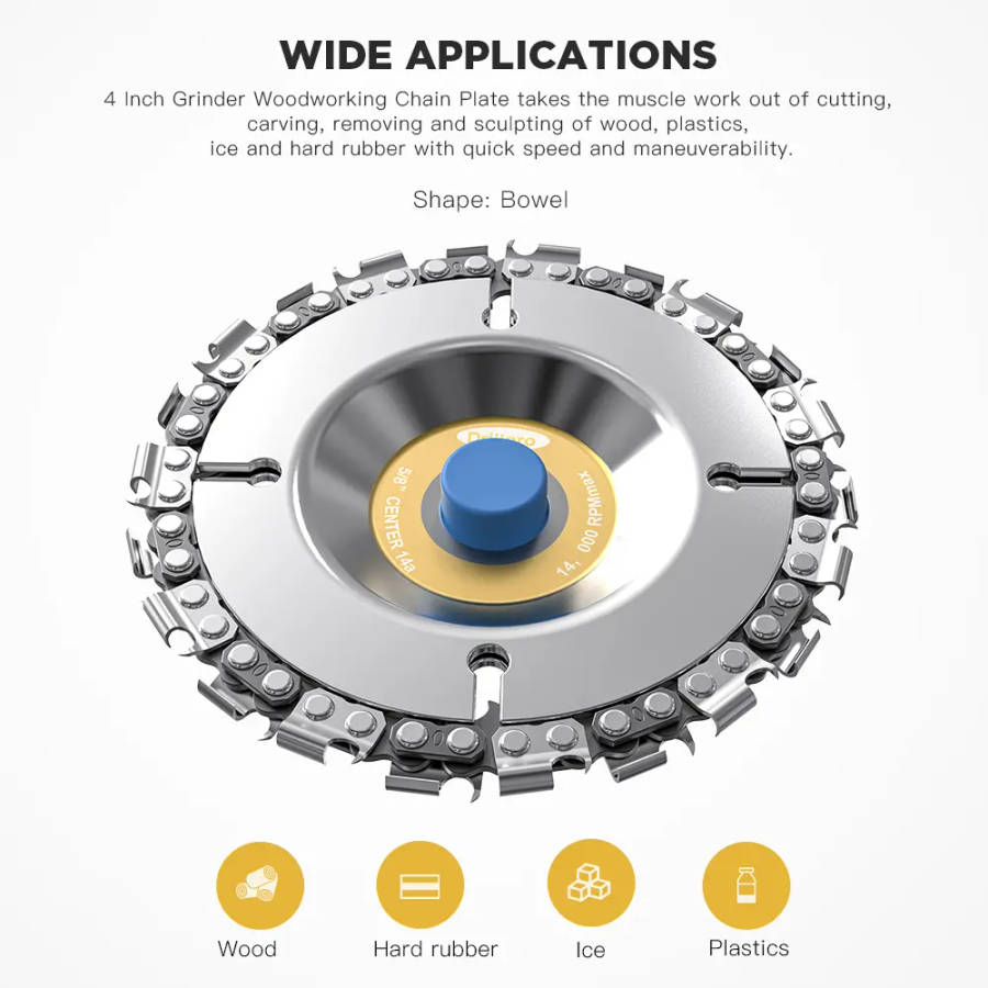 - Grinder Disc Chain Saw takes the muscle work out of cutting, carving, removing and sculpting of wood, plastics, ice and hard rubber with their speed and maneuverability.