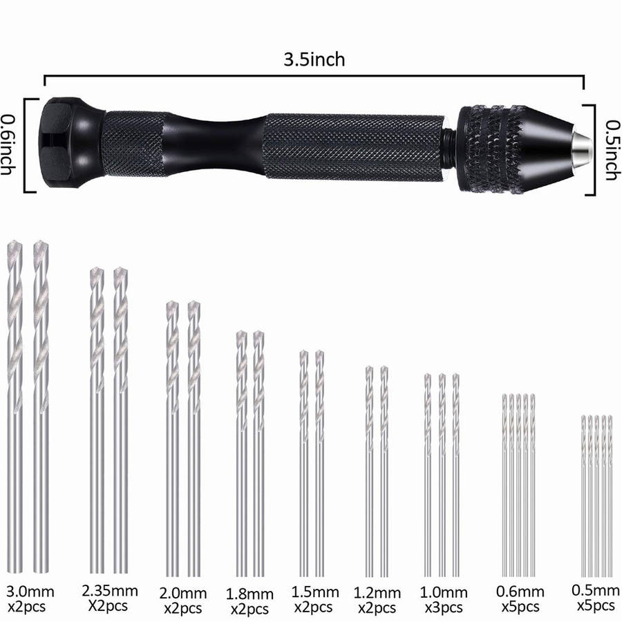Drillpro 36 Pieces Hand Drill Set Include Pin Vise Hand Drill Mini Drills and 0.5-3.0mm HSS Drills and 0.3-1.2mm PCB Drill for Craft Carving DIY