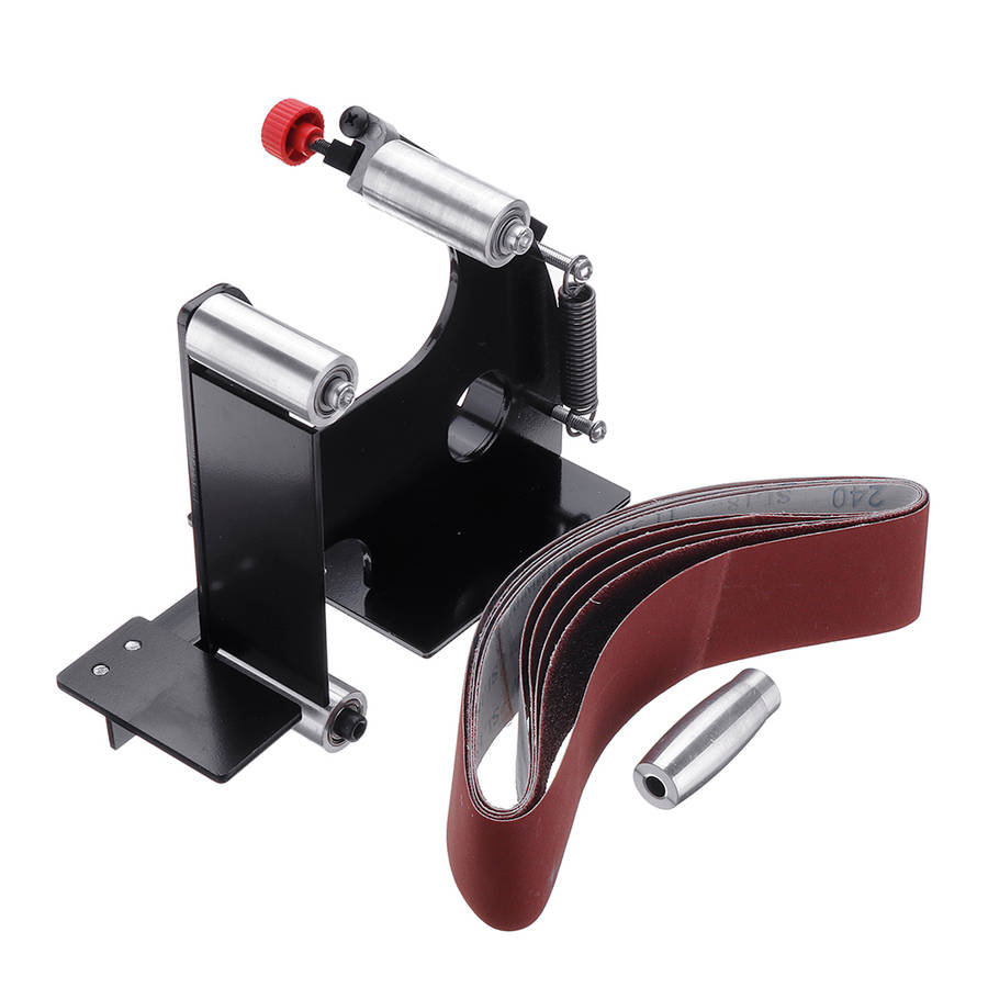 Description: Drillpro Large Type Angle Grinder Belt Sander Attachment Metal Wood Sanding Belt Adapter for 115 125 Angle Grinder Belt Sander Attachment Set Make Your Grinder Into a Belt Sander in a Minute