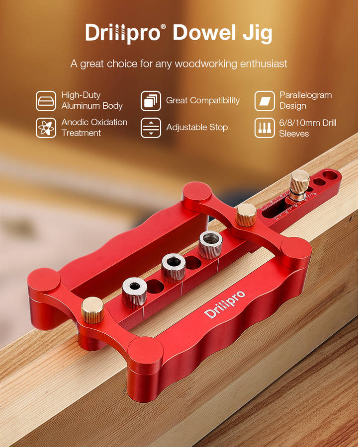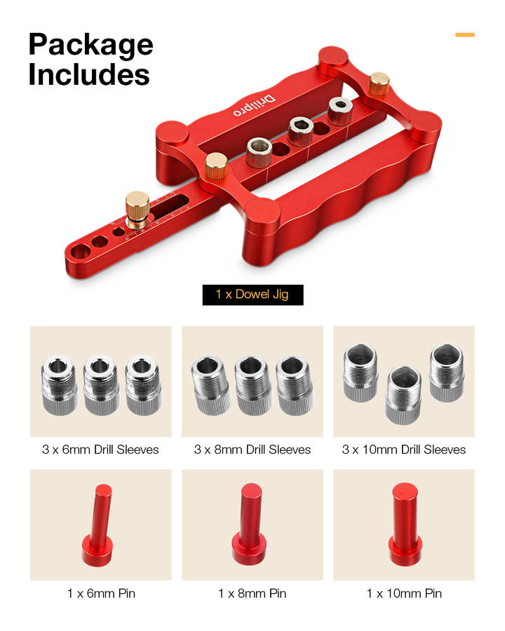 Drillpro Self Centering Dowelling Jig for Metric Dowels 6/8/10mm Precise Punch Locator Drilling Tools