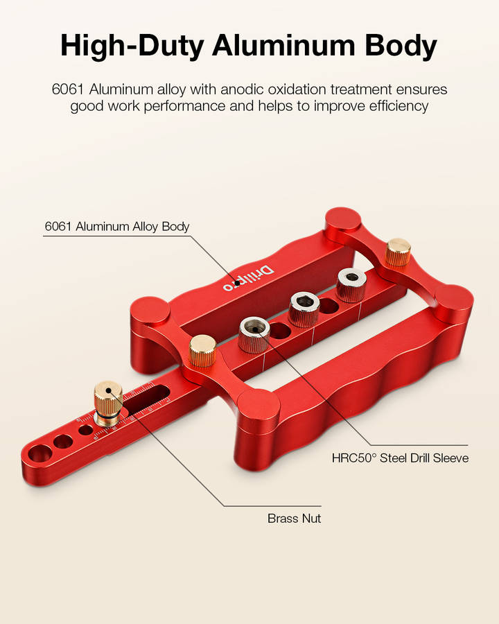 | Material | Aluminium Alloy 6061 (Dowel Jig) Steel HRC50° (Drill Sleeve) |