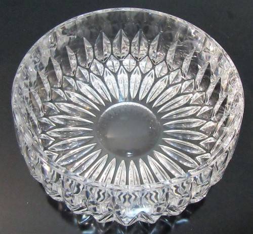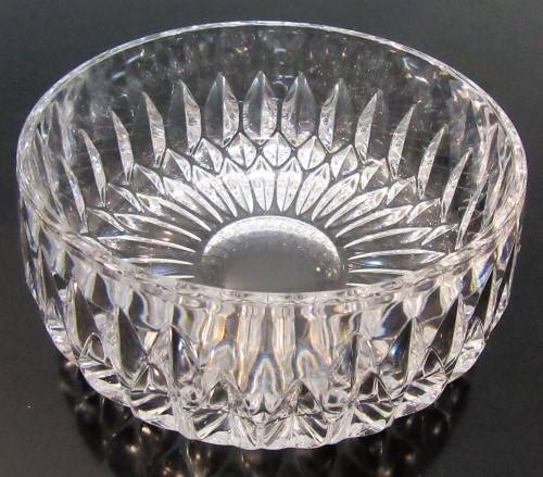 Drop dead gorgeous vintage Waterford Style Crystal bowl. I believe this to be the Lismore pattern. The bowl is in perfect vintage condition ; no chips or scratches. Even though it is "vintage" from the 1980's, it has a modernist shape to it. The glass is thick; a very quality piece of crystal that will add an amazing amount of glitter and sparkle to your table.