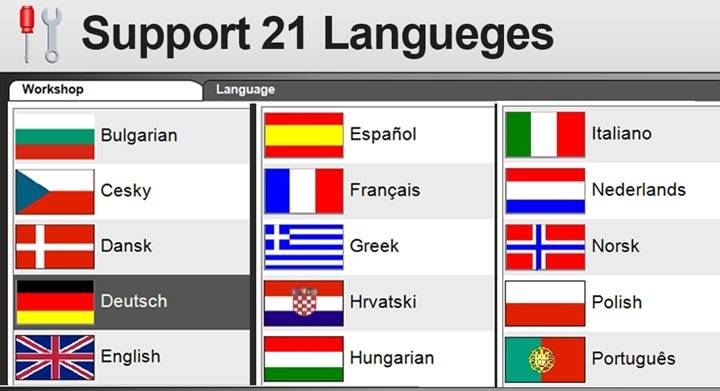 3. The newest Software 2017.03 supports the following languages: B Ulgarian ... Cesky ... Dansk Deutsch English Spanish and French Greek Hrvatski Hungarian "all" Nederlands ... Norsk ... Polski ... Portuges Romana Russian ... Srpski ... Suomen kieli ... Svanska Turkish!