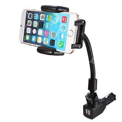 Dual 2 USB Ports Car Cigarette Lighter Charger Mount Holder For Cell Phone GPS