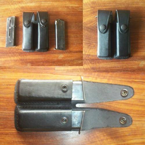 Dual Leather Star 9mm Magazine Belt Pouch With Two 9mm Star Magazines.