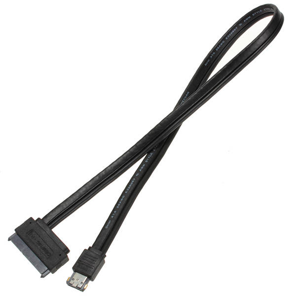 Package weight: 0.05 kg Description: 22Pin SATA is (7pin+15Pin). Power eSATA (eSATA+USB combo) to 22 Pin SATA cable. Your desktop will have to support the Power eSATA 5V and 12V. The Cable supports 5V/12V Power Over eSATA to SATA 22 Pin HDD Adapter Cable. It supports with 2.5",3.5" SATA HDD and 5.25" Blueray Play, DVD Play and CD Rom with data transfer and power for 5V and 12V. Because of using 5V/12V Power Over eSATA connector. Power Over eSATA connector. Lenght:50cm Color:Black Note: Our cable support both 5V & 12V, however pls check whether your PC support 12V output. If your PC support only 5V, then you can use only with 2.5" hard driver. If your pc support output of 12V, you can use with 2.5"/3.5" and 5.25" hard driver.So if you are planing to use with 3.5" or 5.25" hard driver, pls check with your mainboard/PC support 12V output.Because 5V output only work with 2.5" hard drivers. Package Included: 1 x SATA to eSATA USB Combo Cable