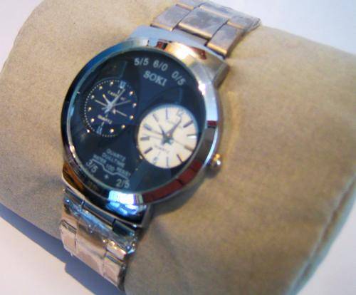 New Multi 2 Dual Time Black Dial Analog Quartz