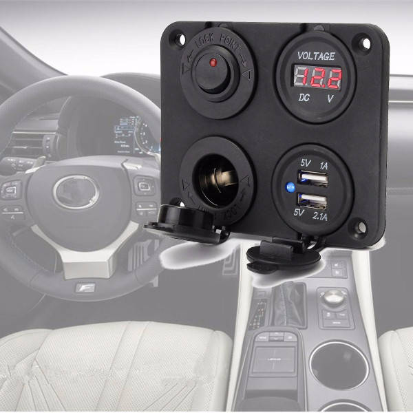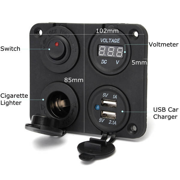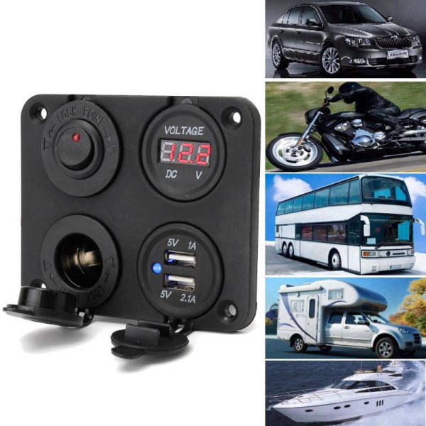 Dual Usb Adapter Charger Sockets & Digital Volt Meterr & Switch Panel
