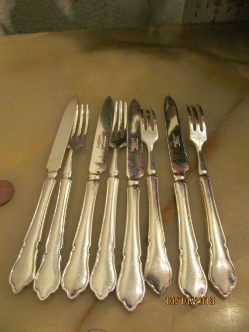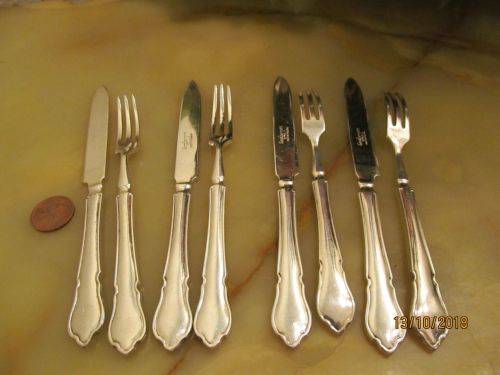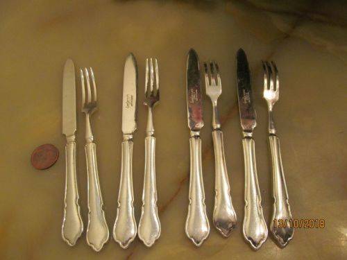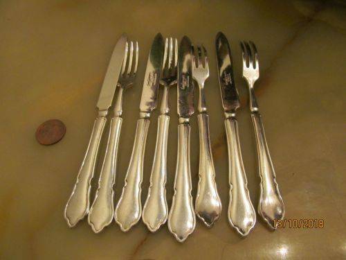 VINTAGE LOT /SET OF EIGHT SILVER PLATED CUTLERY ITEMS - FOUR DESSERT KNIVES AND FOUR FORKS - DUBARRY HANDLE PATTERN