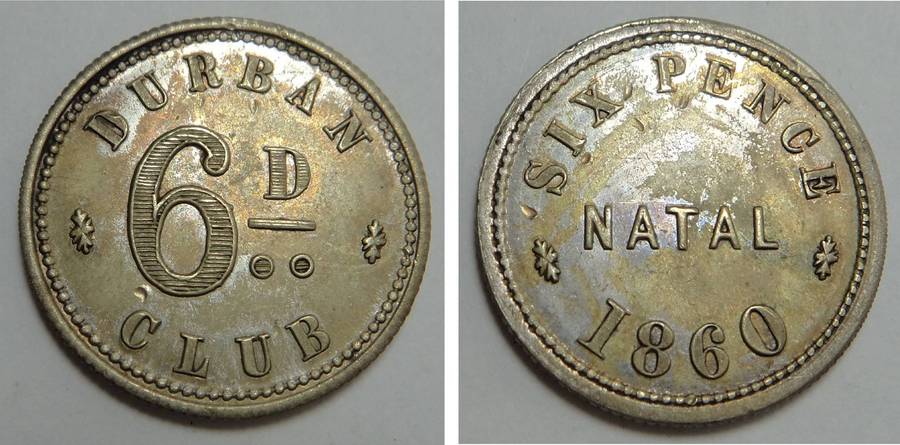 Durban Club 1860 6d (MTB # MB645) Cat. Value R5000