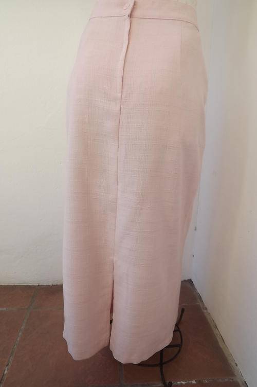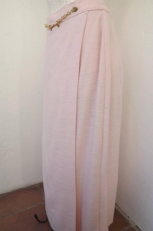 Dusty Pink Maxi Skirt with Fold Over Effect in size 16/40 - Chain Decoration on Middle front by Merien Hall Classics in Polyester Viscose with Linen Look - excellent condition