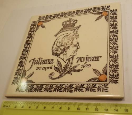 Dutch Porcelain Tile 15cm x 15cm - -Juliana 70 Jaar 30 April 1979