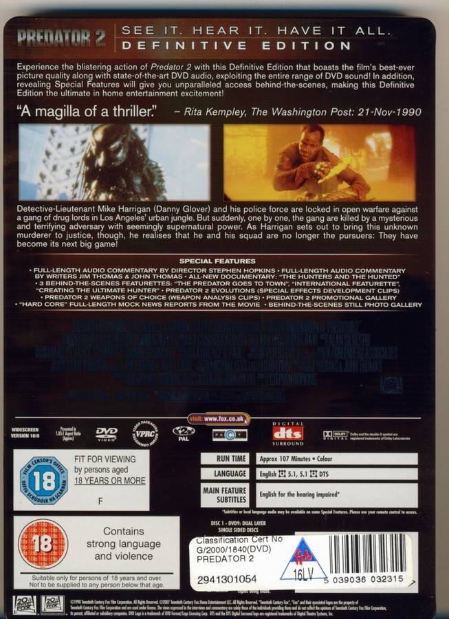DVD - Predator 2 Definitive Edition Steelbook 2 Disc