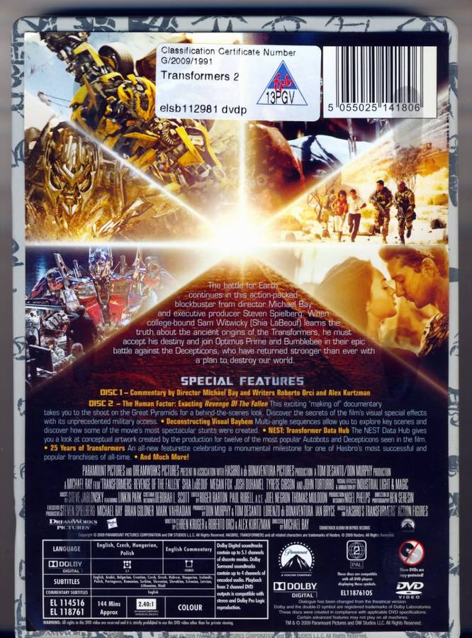DVD - Transformers Revenge of the Fallen Special Edition Steelbook 2 Disc
