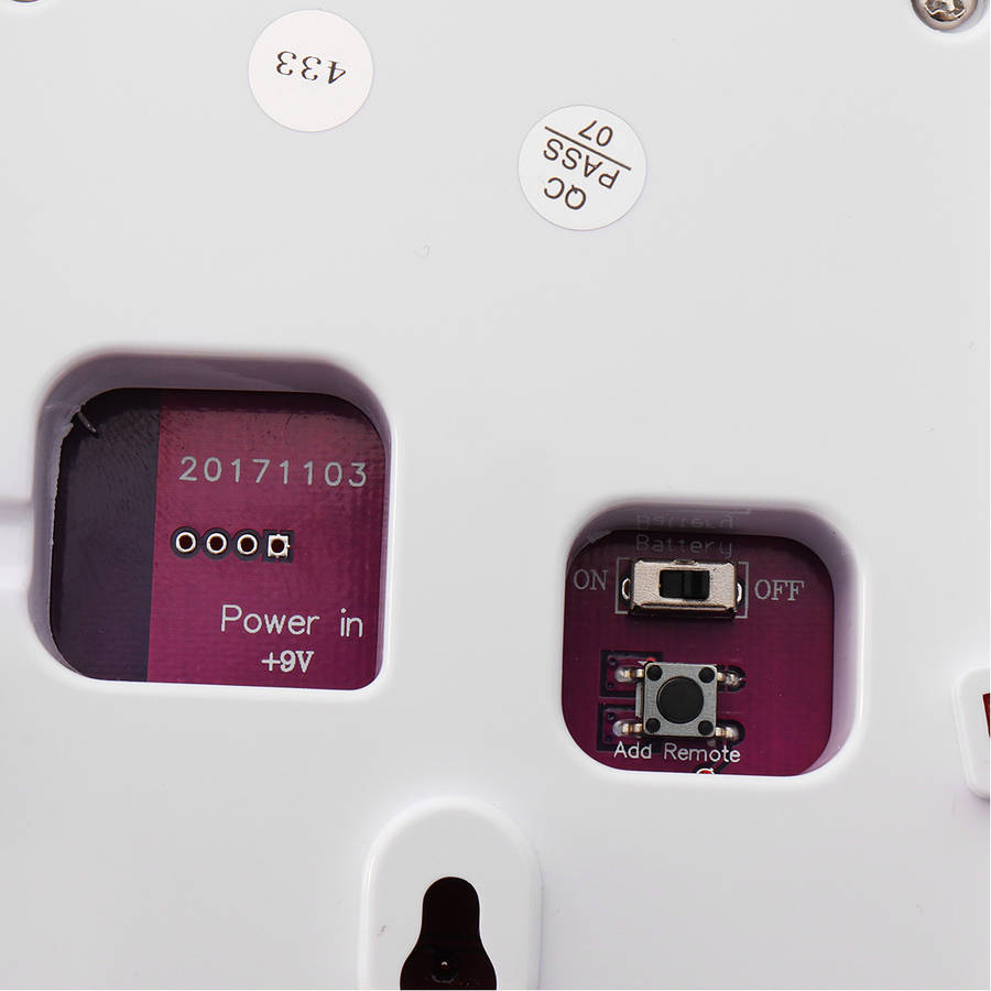 Input voltage: AC 100-240V 50/60Hz Output voltage: DC 9V 1A Static current: ≤15mA Alarm current: ≤300mA Alarm indication: LED flashes in red Alarm sound: ≤120dB Radio frequency: 433MHz (±75KHz) Transmitting distance: ≤80m (in open area) Battery standby time: 15 hours (under full power condition) Operating temperature: -10℃ to +50℃ Humidity: ≤85%