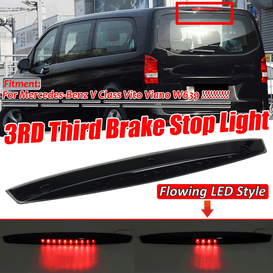 Specification: -Type:DynamicLED3RD Third Brake Stop Light -Material:Plastic -Shell Color:Smoked Color -Bulbs Color:Red -Placement on Vehicle:Rear -Fitment Type:Direct Replacement -Reference OE/OEM Number:A 6398200056, A 639 820 0056 -Manufacturer Part Number:A63982000566398200056 Fitment: ForMercedes-Benz V Class Vito Viano W639 Pls check the OEM Part Number: A6398200056 before making a payment! Feature: -For Mercedes-Benz V Class Vito Viano W639Dynamic LED 3RD Third Brake Stop Light. -High quality and durable to use. -Direct Replacement With No Modification. -Packing will come with a LED 3rd Brake Tail Light. -Replacement rear third brake lights, with super bright red LE . -Dramatically Improve Both Styling & Appearance, Improve Brightness & Safety. -Installation Guide Is Not Included, Professional Installation Is Highly Recommended. Note: - Please allow 1-3MM differs due to manual measurement. - Due to the different display and different light, the picture may not reflect the actual color of the item. Thanks for your understanding.