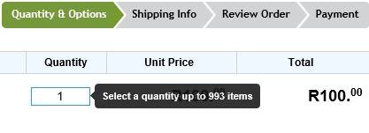 R65.00 Standard shipping applies to orders under R100.00, in most areas in South Africa. R35.00 Standard shipping applies to orders over R100.00. Some areas may attract a surcharge surcharge. This will be calculated at checkout if applicable.