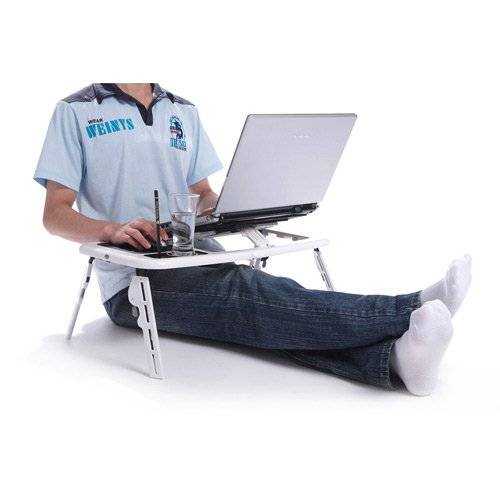 Multi-function notebook table, used as a portable laptop table, a laptop holder, a bed table and more.