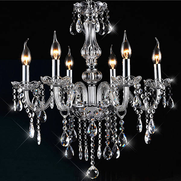 Specifications: Connector:E12 Voltage:AC110-240V Max Wattage:600W Style:Modern/Simple Holders:6 Color:Clear Material:Crystal Dimension: About 55cm(Diameter)*55cm(Height)*25cm(Pendant Chain) Pendant Chain:Can be adjustable Applications:Restaurant, corridor, study, hotel rooms, living rooms, etc Package Included: 1 X Pendant Light( Bulb is not included)