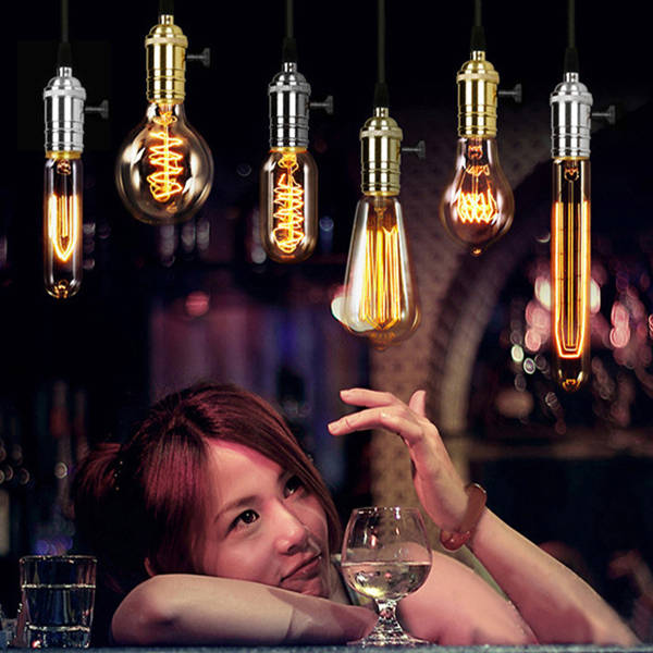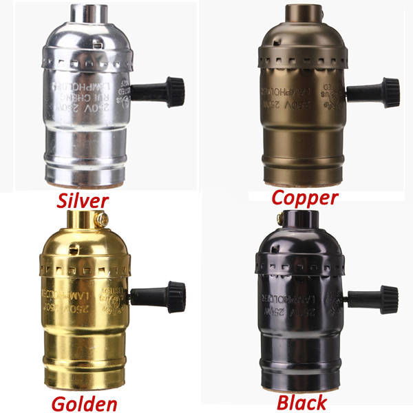 Description: Black Iron copper holder Edison bulb retro pendant lamp ceiling light Light source type: incandescent, Edison light bulb Material: Copper + Iron Wattage: 40-60W Voltage: 110 - 220V Light: Edison Bulb Base: E27 Color: Silver/Copper/Golden/Black