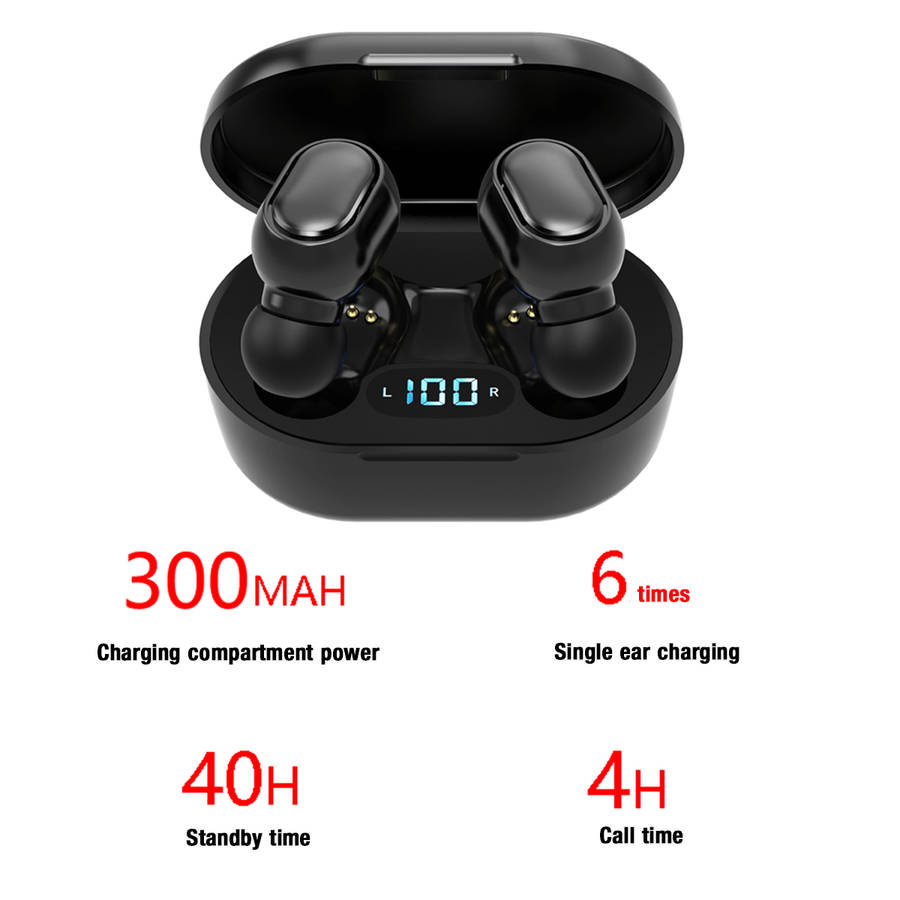 Specification: Product model: TWS-E7S Specification: 27.5*40*62MM Headphone type: in-ear bluetooth version: V5.0 Charging Case Battery Capacity: 4000mAh Channel system: stereo Talk time: 4H Playing time: 5H Standard voltage: 3.7V Communication distance: effective distance 10 meters