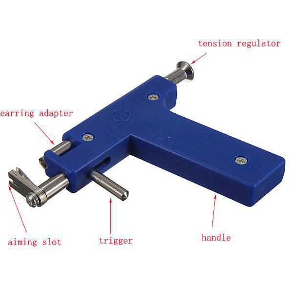 Description: Type: Body Piercing Tool Material: Stainless Steel, Plastic Weight: About 155g Package Includes: 1 X Body Piercing Tool 1 X Marker Pen 1 X Plastic Case 1 X Mini Mirror 98Pcs Studs How to use: 1. Put an ear stud in the adaptor. 2. Adjust the tension regulator to locked the position. 3. Put the tool to ear and aim the position (earlobe), hold the trigger to back the ear stud cradle. 4. Clean up both the tool and studs before and after use. Notes: 1. Please keep away from children. 2. Removal of the piercing studs if signs of infection develop 3. Due to the difference between different monitors, the picture may not reflect the actual color of the item. Please consider this before the purchase. 4. Please allow slight deviation for the measurement data.