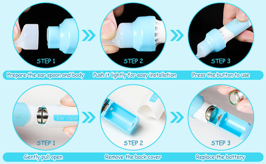 ✔ Easy To Use: You simply press the switch and the LED switch, gently insert the electric ear cleaner into your ear, then gently vibrate it to attract your earwax, then wait a moment and move it slowly and softly.