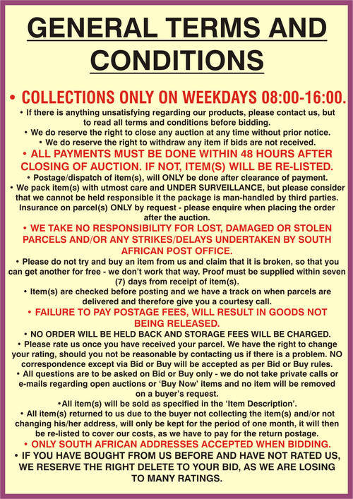 SOUTH AFRICAN POST OFFICE: R55 FOR THIS ITEM - combined postage available at R10 per additional item - highest rates applies first.