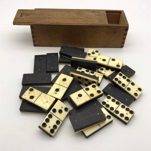 Early Boxed 'Ebony & Bone' Dominoes Set