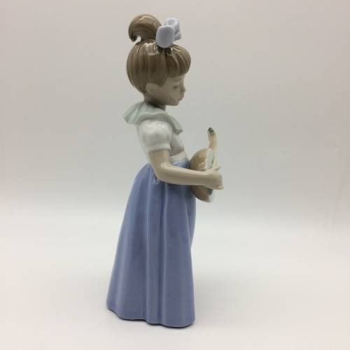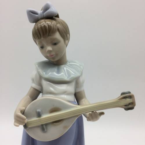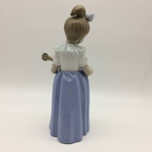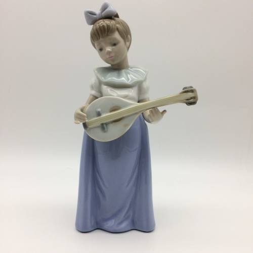 This lovely, discontinued 'Nao' figurine of a young girl playing a mandolin is in excellent condition. Nao porcelain figures are hand crafted and painted by apprentices in Valencia, Spain and are part of the LLadro Group. It stands 19cm high and measures 10cm at its widest.
