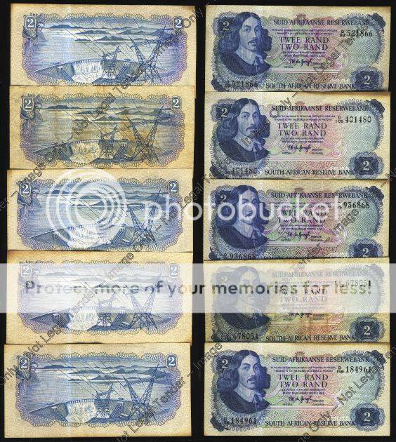 Early RSA Banknotes : 5 x TW de Jongh R2 notes from the 1970s