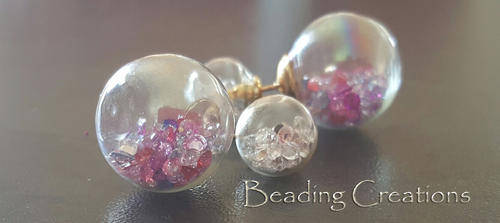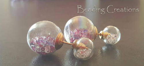 EARRINGS - CLEAR DOUBLE GLASS BALL STUD - MULTICOLOR AND CLEAR